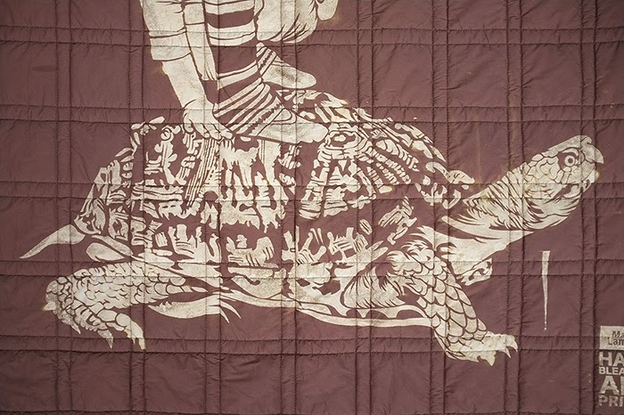 Yoga on Turtles – ‘Uttanasana’, print on cotton, 120x150cm: