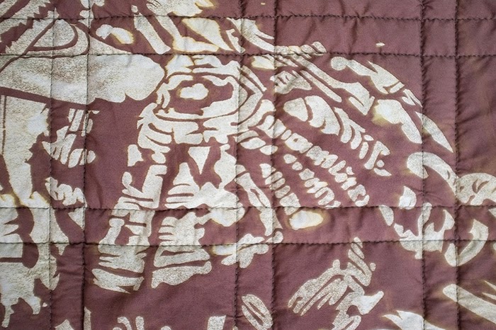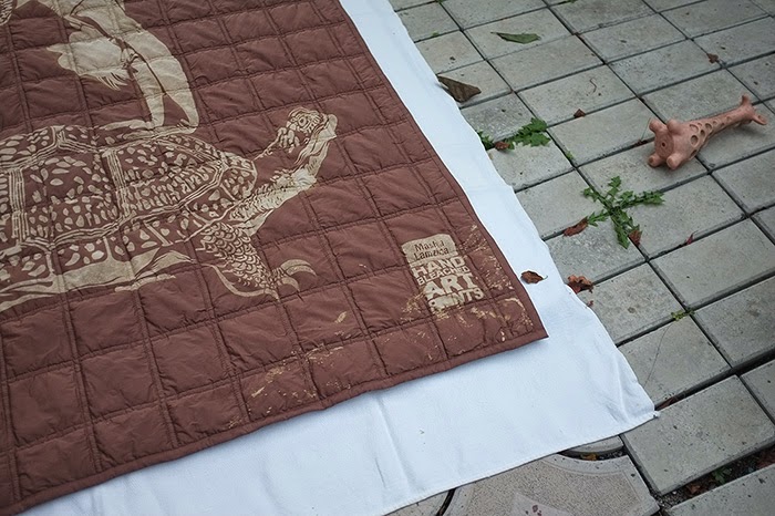 So these are the two prints of my ‘Yoga on Turtles’ series, printed on pinkish-brown cotton and quilted.