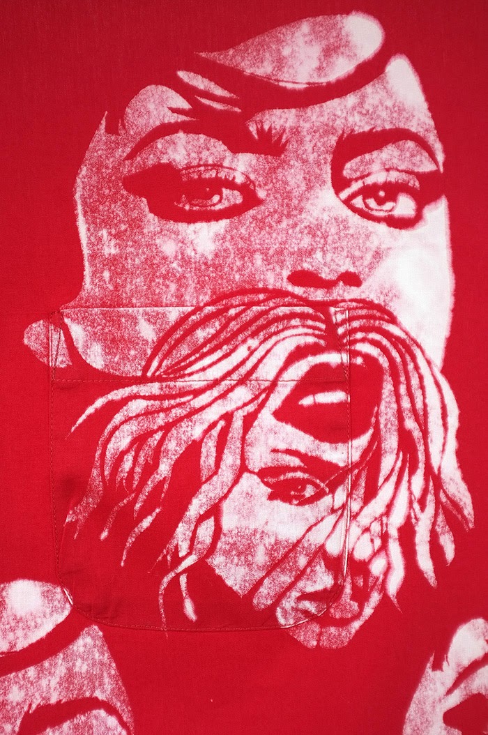 This is a vest with giant prints, based on my collage artworks. Both prints are made by my unique technique of hand-bleached stencil art prints. To show a semi-tone effect of the primary images,...
