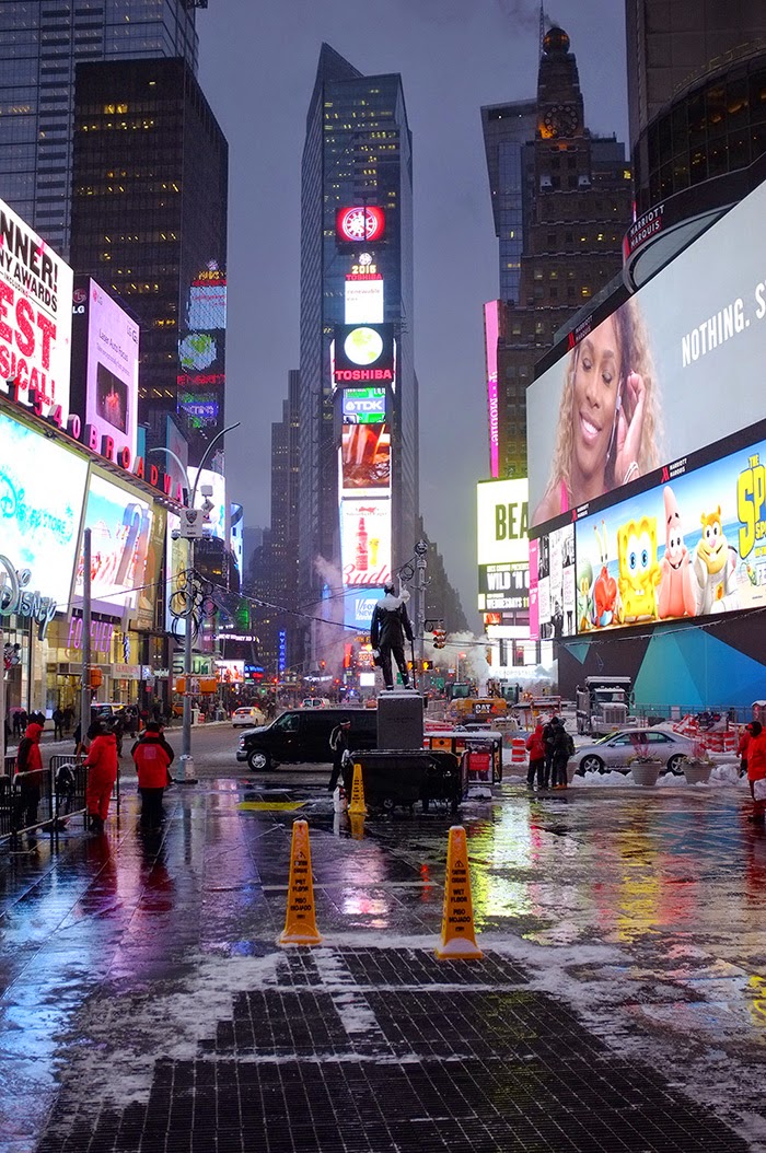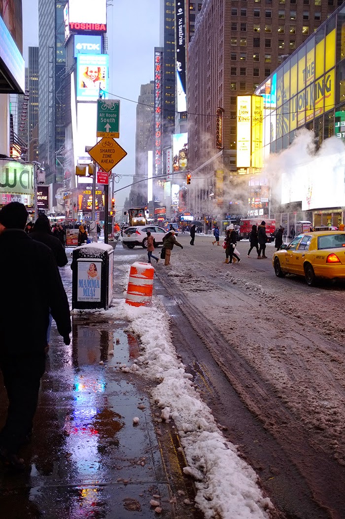 Here are some pictures from the snowy Times Square today: