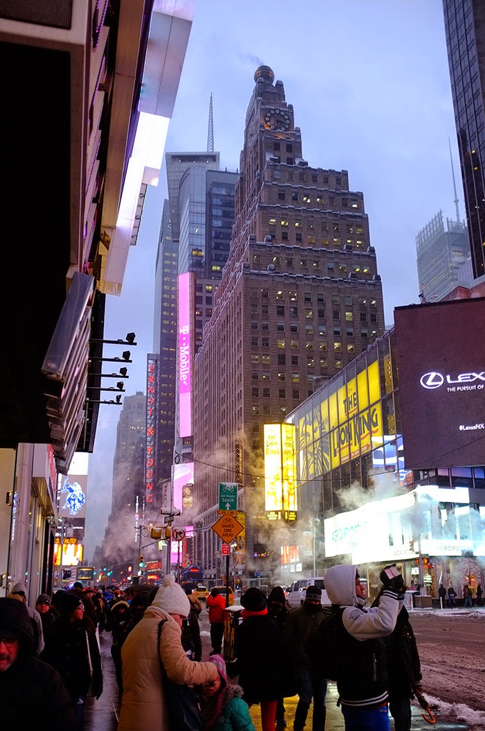 Visiting New York and especially The Times Square was my greatest dream since childhood. Oh my Dear Lord, people say that ‘native New Yorkers never go there’, but my dream was to come and see it at snowy weather, and by happy coincidence Masha’s dream is totally fulfilled now. I saw the scenes from my favourite cyber-punk movies such as Blade Runner, Brazil or Minority Report there, I thought people got the inspiration from their minds, but no, New York itself is so inspirational. The Subway, all the streets… Wow. And I’ve seen almost nothing yet!