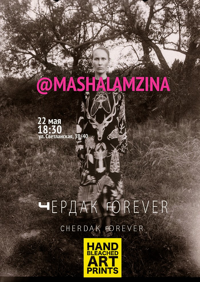 20 May UncategorizedInvitation for My Fashion Show!May 20, 2015 Posted by Masha Lamzina Leave a comment I’m happy to announce my Fashion Show which will take place in Vladivostok this Friday! I’m excited and happy to introduce my complicated hand-bleached art printing technique to public! I hope that everybody will like my project as well as I do! FacebookXEmailPinterestLinkedInWhatsAppWhatsAppTelegram