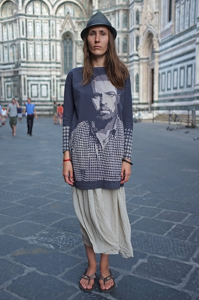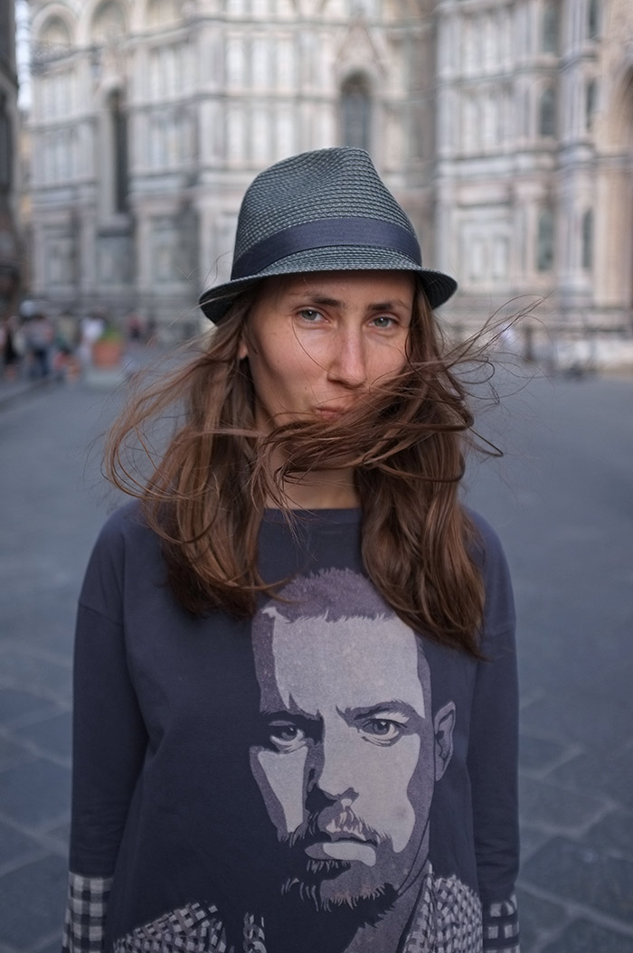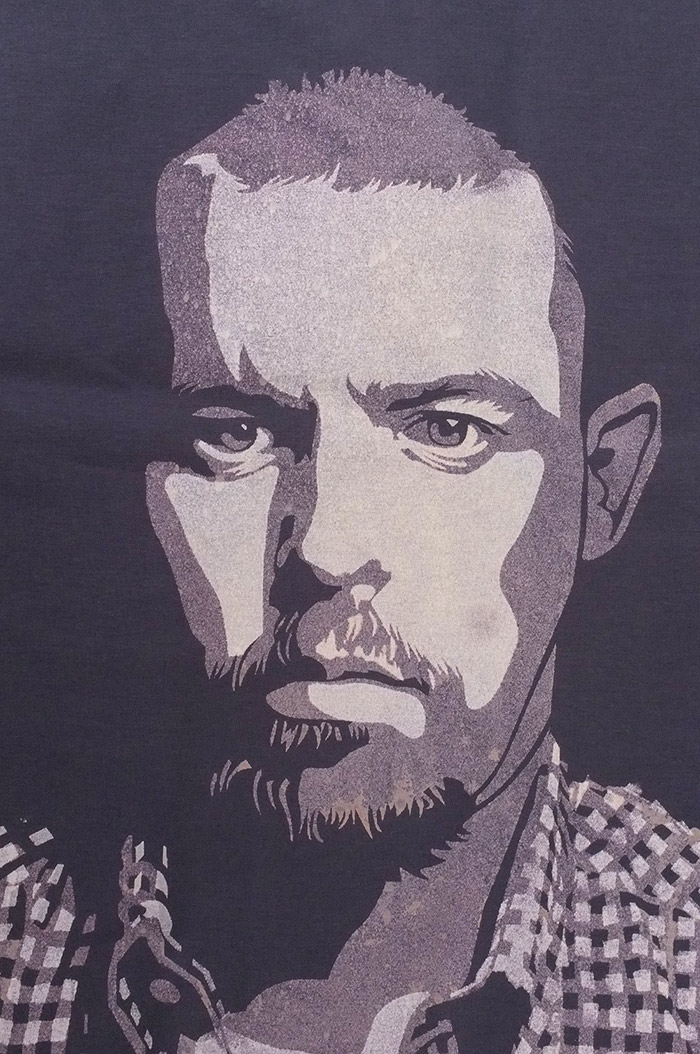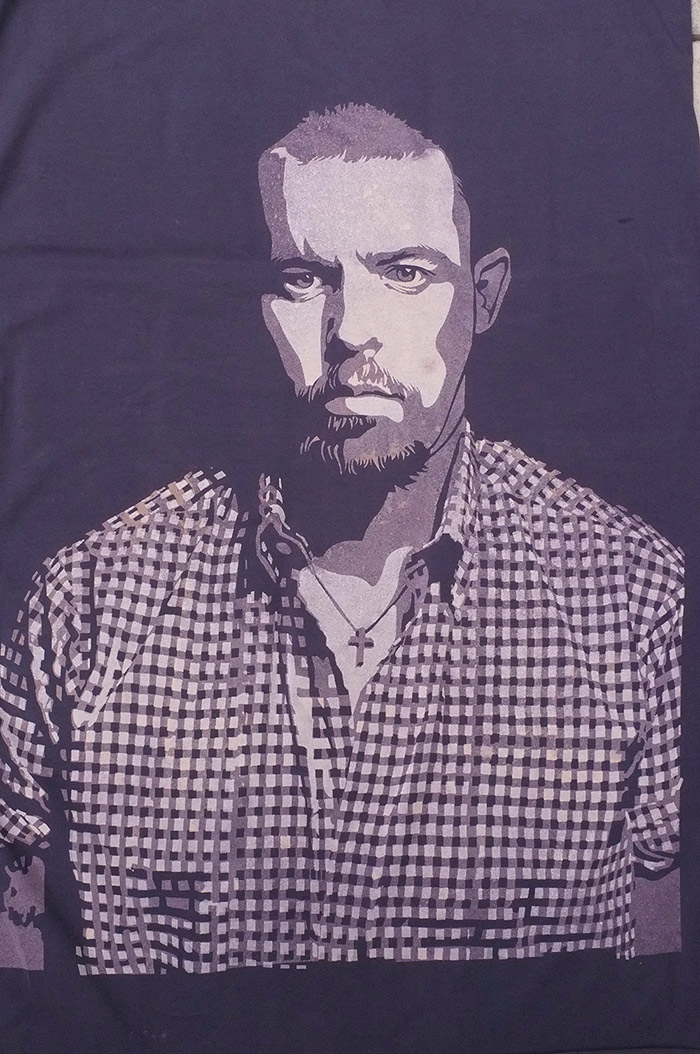 It was very elaborate to make these double prints on cotton Jersey. All job on making hand-bleached prints was doubled: at first, I printed all grey areas, at second - all white ones.The T-shirt...